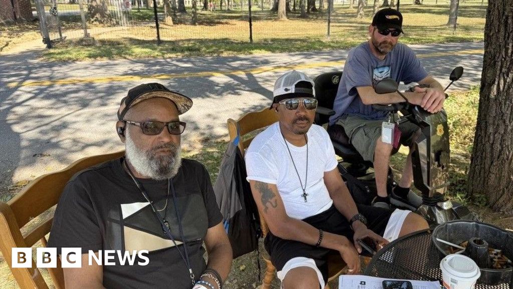 On an unseasonably warm Monday nearly six days after the US government shut down, Mr Giba sits underneath the shade of a large tree chain-smoking cigarettes with fellow veterans.